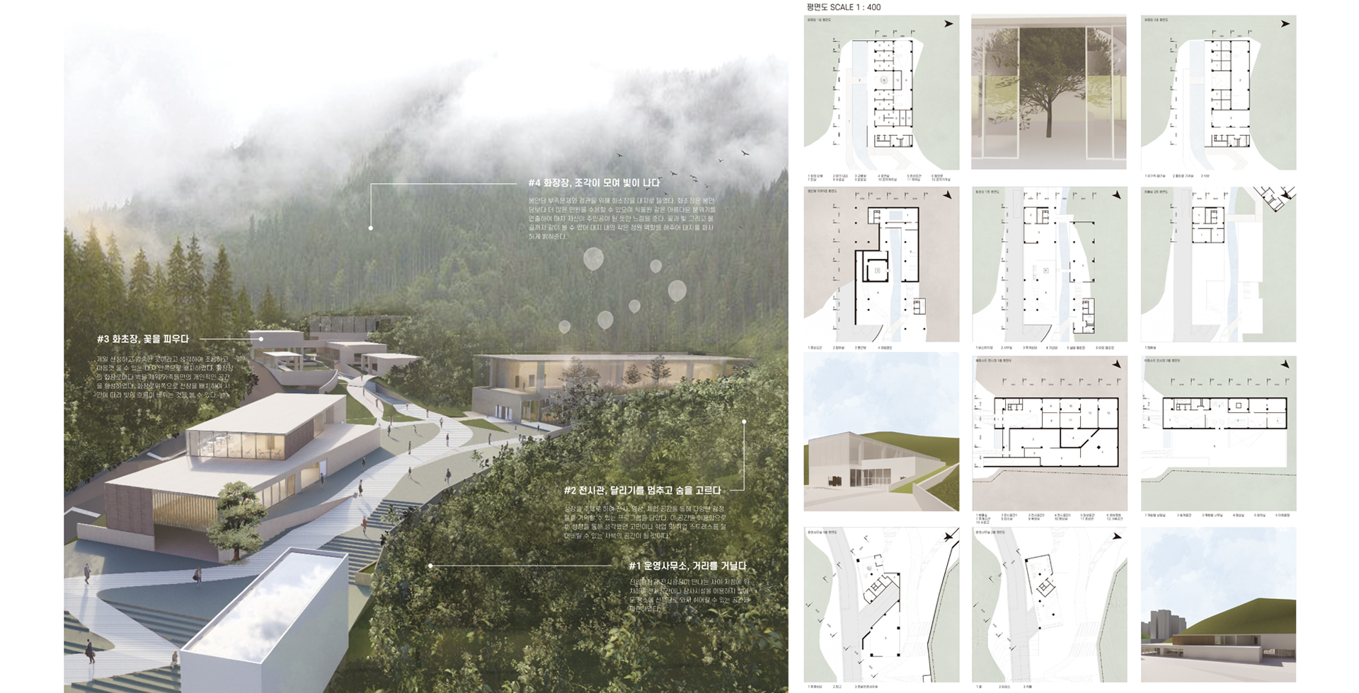본 프로젝트는 빛과 물을 이용한 추모 방식을 도입하여 죽음에 대한 사회적 인식을 변화시키고 남아있는 사람들의 아름다운 삶의 조각을 대지에 꽃 피우고자 한다. 대지는 외곽지역에 위치하지 않고 유일하게 도심지에 위치하고있는 포항시 우현동 시립화장장 대지로 선정하여 인식개선 및 접근성을 유도하여 장사시설의 새로운 패러다임을 제시하고자 한다.